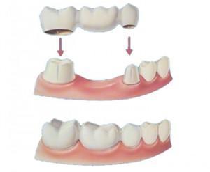 A bridge is made up of two or more crowns for the teeth on either side of the gap, these two or more anchoring teeth are called abutment teeth, and a false tooth or teeth in between. These false teeth are called pontics Dental bridges are supported by natural teeth or implants.